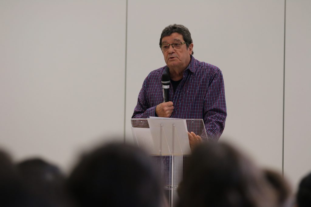 Sept années d’élève-interne dans la période d’avant 1968, époque quasi médiévale, trente-huit années comme professeur de français, passionné par le théâtre, passion vécue comme un moyen éducatif pour le développement des élèves. Merci de me permettre de retrouver ces lycéennes et lycéens, même s’il faut assumer une soixantaine d’années de plus, un long parcours de vie, duquel je tirerai quelques réflexions que je souhaite utiles pour vous.