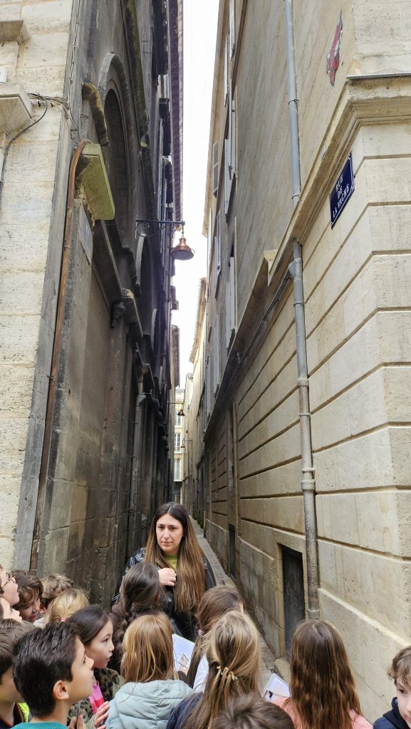 Au fil des ruelles pavées du centre historique, les élèves ont remonté le temps. Ils ont notamment observé la majestueuse Grosse Cloche, ancien beffroi de l’hôtel de ville et symbole du Bordeaux médiéval, ainsi que la remarquable Porte Cailhau, qui servait autrefois de porte d’entrée principale dans la ville fortifiée.