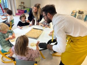 Nous avons découvert les quatre saveurs, trié et goûté différents aliments, sentis des épices, comparé des eaux sucrées, et même appris comment se fabrique le miel ! Les enfants ont aussi eu la chance de découvrir la fabrication de glaces et de réaliser leurs propres pizzas .